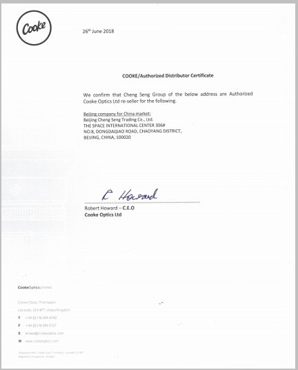 COOKE授權書(shū)